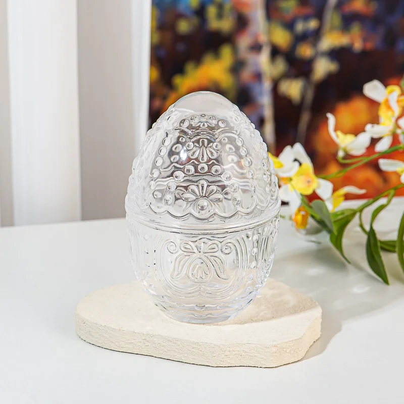 Creative Egg Shape Embossed Pattern Glass Container 286ml Candle Jar with Lid |