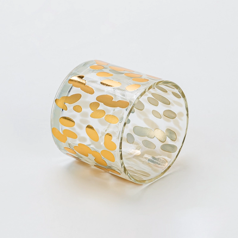 Premium Transparent Glass Candle Vessel with Custom Logo and Golden Spotted Pattern Decal 7oz for Home Wedding Party Decor