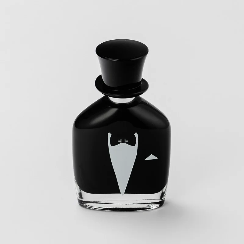Unique Design Black Glass 50ml Perfume Bottle with Black Cap