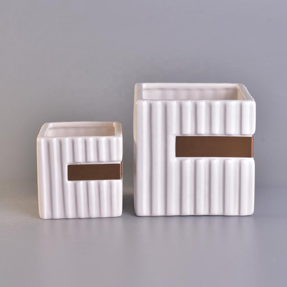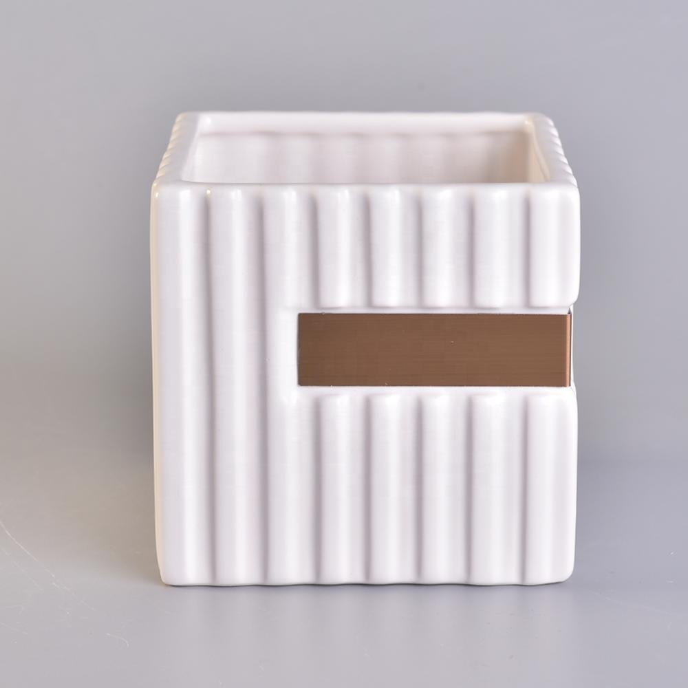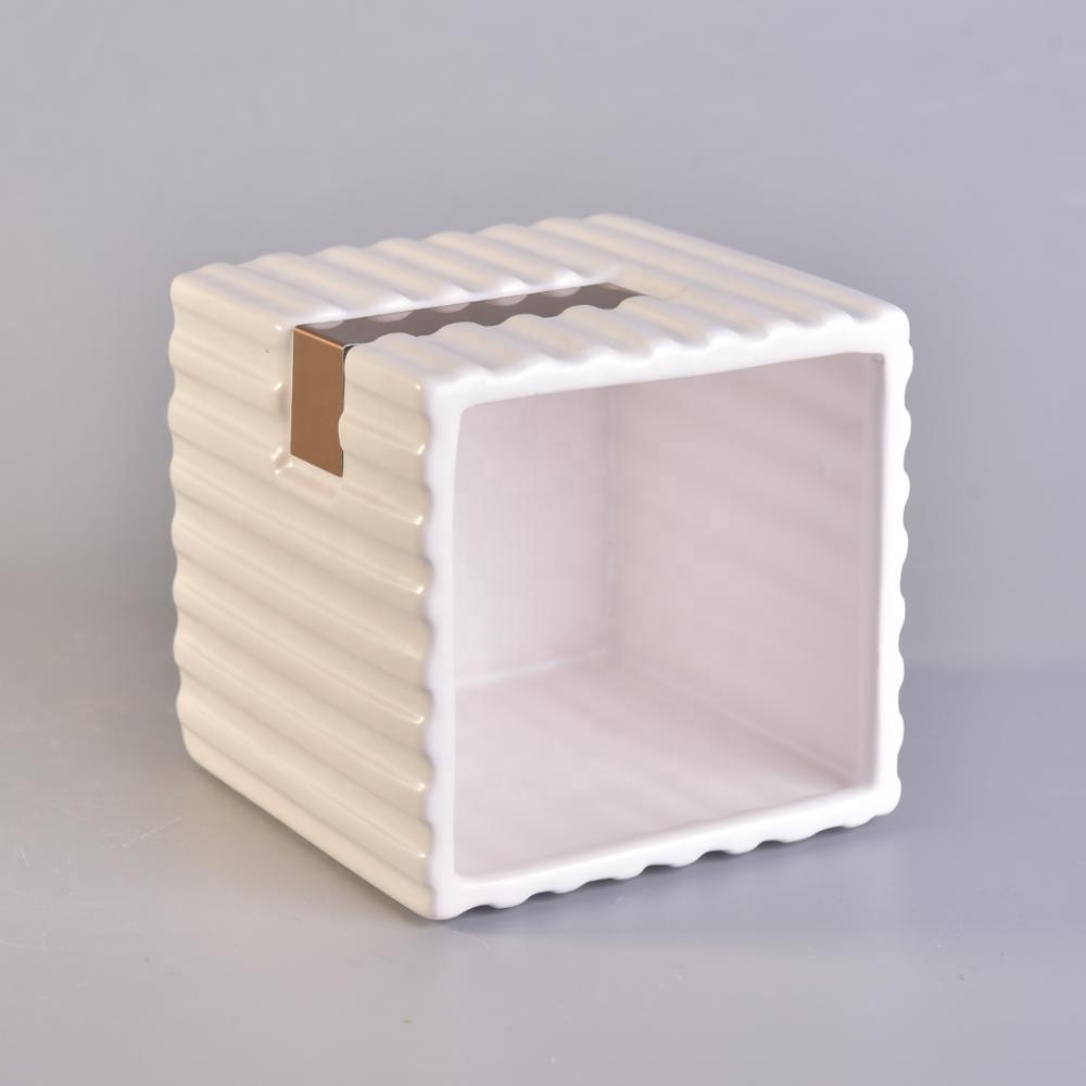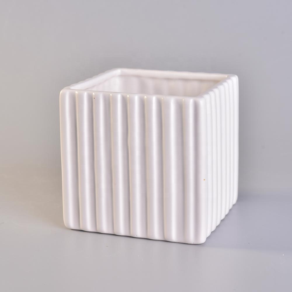 Wholesales stripe white square ceramic holder candle 10oz 12oz